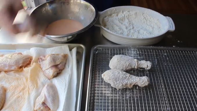 12. Dredge Chicken in flour (dry) mixture.